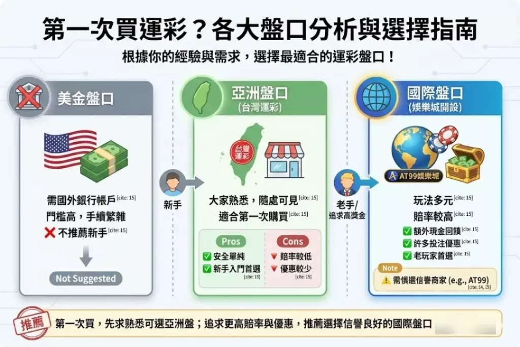 第一次買運彩的玩家多半會選亞洲盤,所謂亞洲盤就是台灣運彩的部分,這裡到處都可以讓玩家進行下注之外,最重要的是該盤口也是大家比較熟悉的項目,不過僅限於第一次買運彩的玩家僅此,因為老玩家會到國際盤口下注,光是兩者的賠率跟優惠就已經天差地別,所以老玩家不會想要到較低賠率盤口下注,但如果你還不熟也可以選亞洲盤這點還是見仁見智。