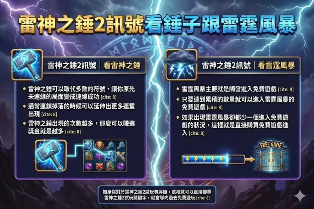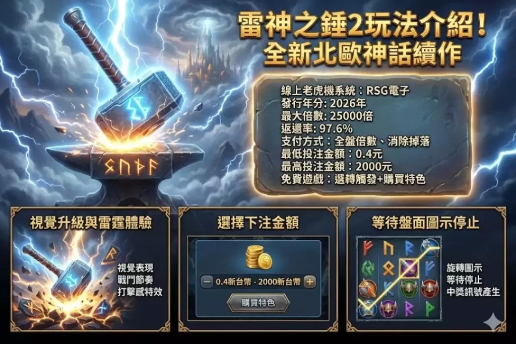 戰神賽特2還未發行就已經受到玩家關注,不過至今還是沒上市,這一點相信大家都看得霧煞煞,所以等待戰神賽特2之前,就來看看全新雷神之錘2,這裡來告訴你雷神之錘2玩法、雷神之錘2選台以及雷神之錘2訊號,因為剛上市所以超搶台,想賺錢就趕快先去卡位!