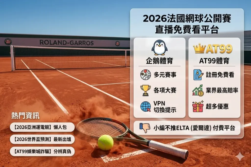2026法國網球公開賽要去哪裡觀看?這裡大家想到愛爾達?笑死這要付費的平台誰愛?雖然愛爾達的畫質高清且可以錄影回放,不過針對大型賽事還需要額外付費這點小編不喜歡,所以這裡就不推薦大家到愛爾達觀看賽事,除此以下兩個免費2026法國網球公開賽直播平台可別錯過!
